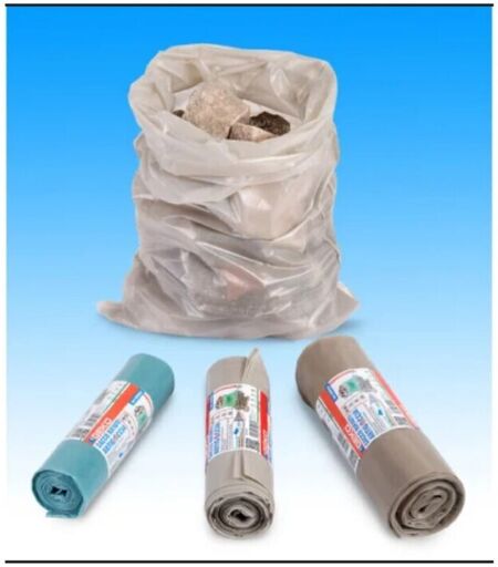 realizzato in LDPE. Antigoccia. Spessore 120 my. Capacita 25 L. Dimensioni 50 x 80 cm. Colore ambra. Rotolo da 10 pz ...
