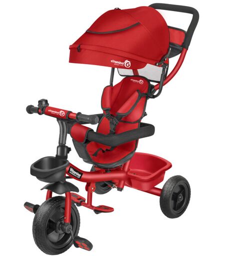 Il triciclo Vitamino Evolution è dotato di manubrio con impugnatura antiscivolo regolabile, cappottina parasole reclinabile con finestrella, seduta rotante a 180° e poggiapiedi richiudibili. Dimensioni: 98 x 94 x 50 cm. Portata max 25 kg. ...