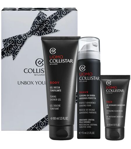 + Schiuma da Barba Aderenza Perfetta 75 ml + Gel Detergente Energizzante Viso 30mlAUTHENTIC ITALIAN STYLE.CON COLLISTAR BASTA UN GESTO PER ESALTARE IL TUO STILE UNICO OGNI GIORNO.grazie a:• Gel Doccia Tonificante 100 ml• Schiuma da Barba Aderenza Perfetta 75 ml• Gel Detergente Energizzante Viso 30mlGEL DOCCIA TONIFICANTEUna formula in gel arricchita di preziosi agenti emollienti che deterge delicatamente il corpo, tonificando la pelle. Grazie all'Acqua distillata di Bergamotto Italiano dona freschezza, energia e vitalità. Frizionato sul corpo durante la doccia, il gel si trasforma in soffice schiuma ed esercita un intenso effetto tonificante e rinvigorente.SCHIUMA DA BARBA ADERENZA PERFETTASpecifica per pelli sensibili, assicura: risultato impeccabile e aderenza perfetta per l'intera durata della rasatura. L'Estratto di Opuntia iperfermentato di origine italiana idrata e calma rossori e irritazioni. L'Olio di Kiwi italiano protegge e nutre l'epidermide.GEL DETERGENTE ENERGIZZANTE VISODeterge quotidianamente la pelle del viso, donando energia e vitalità. Uno specifico attivo multi-minerale elimina grigiore e colorito spento. La caffeina rivitalizza e tonifica. L'Acqua Distillata di Menta Italiana dona una piacevole sensazione di freschezza.Per tutti i tipi di pelle. ...