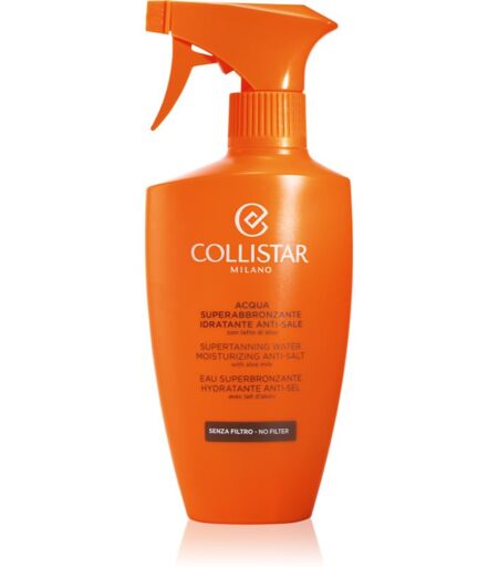 Collistar Special Perfect Tan Supertanning Water Moisturizing Anti-Salt, 400 ml, Prodotti pre-sole per donna, Conserva il tuo souvenir delle vacanze estive con un corpo splendidamente abbronzato il più a lungo possibile. Il prodotto Collistar Special Perfect Tan Supertanning Water Moisturizing Anti-Salt fornisce la necessaria cura alla pelle esposta al sole ed estende la durata dell’abbronzatura. In questo modo la tua pelle manterrà una tonalità bronzea uniforme a lungo dopo le giornate trascorse al sole. Caratteristiche: dona l'idratazione necessaria alla pelle aumenta l'intensità dell'abbronzatura conferisce una morbidezza vellutata favorisce una sana abbronzatura Composizione: aloe vera – ha effetti altamente idratanti e rigenerativi, proprietà antiossidanti, aiuta a proteggere dai radicali liberi e dalla secchezza Modo d’uso: Agitare prima dell'uso. ...