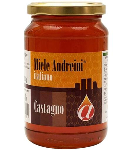 MIELE ANDREINI Castagno - Per l'alto contenuto di sali minerali é indicato nelle malattie circolatorie, nelle affezioni dell'apparato respiratorio e per le disfunzioni epatiche, ottimo disinfettante delle vie urinarie e decongestionante delle vene emorroidali. Ideale nelle anemie, nel deperimento e… ...