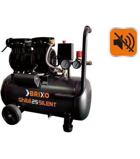 Compressori Brixo Ghibli 25 Lt. silenziato e ricambi Carrellato, con serbatoio 25 Lt., lubrificato ad olio, funzionamento completamente automatico, comandato dal pressostato, dotato di rubinetto scarico condensa, valvola di sicurezza, manometri, riduttore di pressione. Aspirazione 165 lt/min., potenza hp 2/1.5 kW - 2850 giri/min., pressione max 8 Bar/115 psi Compressori Brixo Ghibli 25 Lt. silenziato ...