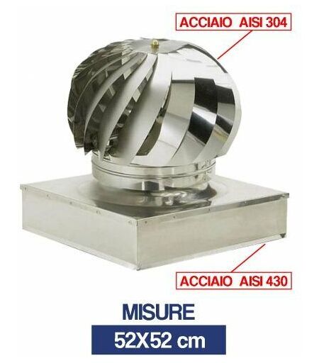 CAPPA GIREVOLE ACCIAIO INOX Sfera in acciaio inox AISI 304, base in acciaio inox AISI 430, con cuscinetti a bagno d’olio. Misure Art.:CM 22X22 (16111)CM 27X27 (16112)CM 32X32 (16113)CM 37X37 (16114)CM 42X42 (16115)CM 47X47 (30827)CM 52X52 (13852) ...