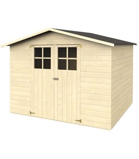 GARDEN COTTAGE CASETTA LEGNO WOODEN A PANNELLI VAL DI FASSA CM.L242xP182xH164/200Struttura in pannelli preassemblati di abete bianco del nord spessore 12 mm. Porta doppia su cardini 120x163 cm. con finestre vetro sintetico. Tetto con finitura bituminosa nera. Pavimentazione inclusa. Dimensioni esterne L242xP182xH164/200 cm. ...