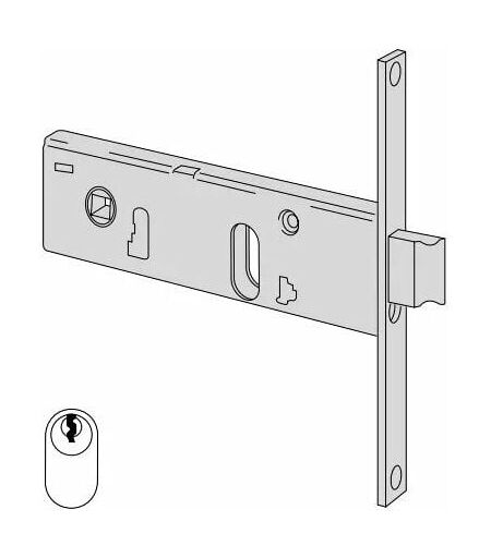 CISA 44151 SERRATURA SERRATURE PER PORTE PORTA DA INFILARE A FASCIA Serratura da infilare CISA per fascie h=44 Serie 44151 ambidestra Caratteristiche tecniche: • Altezza scatola 44 mm. • Scatola con rivestimento in zinco • Frontale con rivestimento in zinco • Scrocco, rullo e catenaccio in ottone Dotazione: • Vite di fissaggio cilindro • Foglio istruzioni (dove previsto) • Scrocco con catenaccio incorporato • 2 Mandate (1 mandata per entrata 60) • Fornita senza cilindro ovale (08210) Dimensione entrata chiave disponibili: - entrata 70 - entrata 80 Testata : - larghezza 20 mm ...