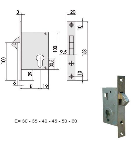Serratura montanti alluminio infilare Zincata - Gancio a mandata acciaio lamellare Ambidestra Cilindro non incluso Scatola 100 - Frontale 20x158 ...
