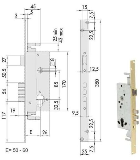 Serratura zincata infilare ferro triplice Catenacci acciaio nichelato - Scrocco nichelato Quadro maniglia mm 8 Ambidestra Cilindro non incluso Scatola 170 - Frontale 25x350. Acquistalo subito da CFadda e ricevilo comodamente a casa. ...