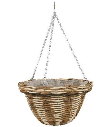 Il basket vaso in rattan è completo di appendino in alluminio. Film in PE all\'interno del basket per contenere il terriccio e l\'acqua Misure: Diametro 30cm. ...