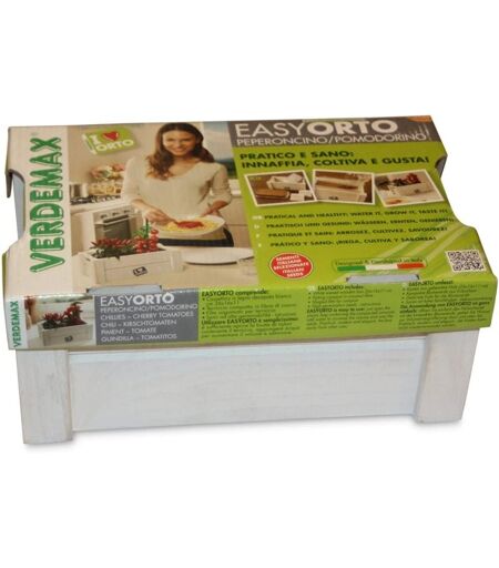 VERDEMAX 2220 - EASYORTO BASILICO/PREZZEMOLO Easyorto comprende: - cassettina in legno decapata bianca cm 26x16x11 - terriccio compatto in fibra di cocco - film sagomato per terriccio - semi ad alta germinabilità - istruzioni per l’uso Utilizzare Easyorto è semplicissimo, è sufficiente aprire la busta di nylon contenente il terriccio compatto, aggiungere acqua per aumentarne il volume e seminare. Pratica, moderna ed elegante la cassettina può essere facilmente riutilizzata. ...