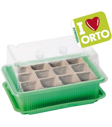 Misure della serra: 20 x 14 x h 11 cm Misura della singola cella: 3,5 x 3,5 x h 5 cm circa Contenitore completo per semenzaio Miniserra di plastica con semenzaio biodegradabile da 12 cellette di Verdemax - della linea I LOVE ORTO per la germinazione delle tue piantine nel rispetto dell'ambiente. Il semenzaio è un utile strumento per la germinazione dei semi e la preparazione delle piantine da trapiantare, le fasi più delicate nella vita delle piante. Può essere utilizzato in ogni momento dell’anno, anche in inverno. È necessario riempire il semenzaio con terriccio da semina, una volta che la piantina è germogliata si taglia la celletta del semenzaio e si trapianta il tutto senza necessariamente togliere la piantina. ...