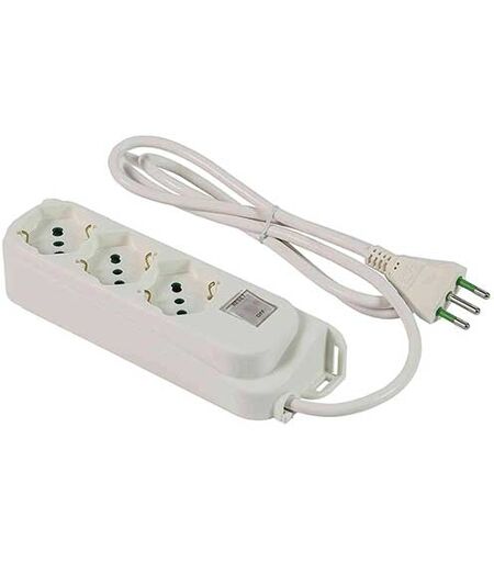 Multipresa Fanton Linea Retail 3 prese bipasso italo/tedesche 2P+T 16A cavo 1,5 m. 3G0,75 H05VV-F spina italiana 2P+T 10A con interruttore automatico luminoso di sovraccarico. Interviene in caso di sovraccarico interrompendo automaticamente l'alimentazione ai dispositivi collegati. Multipresa di colore bianco. Numero prese/uscite: 3 Tensione nominale (Volt): 250 V AC Frequenza (Hertz): 50 - 60 HZ Potenza (Watt/Kilowatt: MAX 2300W Tipo prese: Bipasso IT/DE 2P+T 16A Tipo spina: Italiana 2P+T 10A Lunghezza cavo: 1,500 m Sezione e tipo cavo: 3G0,75 H05VV-F Protezione IP: IP20 Materiale: Polipropilene Colore: Bianco Accessori/opzioni: Interruttore di sovraccarico Confezione singola. Alveoli in ottone, schermati. ...