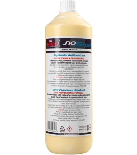 Sigillante antiforatura schiumoso Barbieri No Stop da 1000ml liquido sigillante rapido per uso professionale. Adatto sia a pneumatici tubeless che con camere d'aria NUOVA FORMULA PROFESSIONALE ...