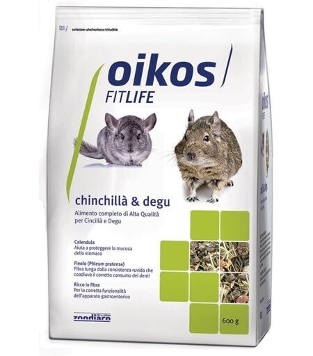 Oikos Fitlife Chinchilla & Degu è un alimento completo adatto all’alimentazione di questi animali. La particolare composizione con erbe di campo lo rende ricco in fibra per favorire un corretto consumo dei denti e il buon funzionamento dell’apparato gastr ...
