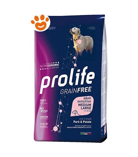 PROLIFE Dog Grainfree Sensitive Adult Medium Large Maiale e Patate Dog Grainfree Sensitive Adult Medium Large Maiale e Patate - Sacco Da 10 Kg -