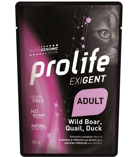 Prolife Exigent Cinghiale Quaglia e Anatra 85g umido gatto 12 x 85g
