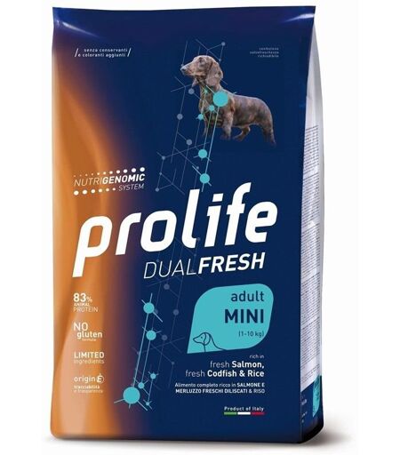 Prolife Mini Salmone Merluzzo e riso 7kg Nutrigenomic crocchette cane dual fresh 2 x 7kg