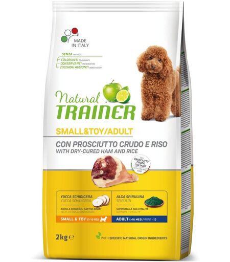 Alimento Completo Per Cani Taglia Piccola Alimento completo per cani adulti (>8 mesi) di piccola e piccolissima taglia. La yucca schidigera contribuisce a ridurre l'odore delle feci limitando le fermentazioni proteiche intestinali. L'alga spirulina aiuta a supportare la vitalità dell'organismo. La vitamina C aiuta a prevenire la formazione di tartaro e alito cattivo. Modalità d'uso Introdurre l'alimento gradualmente, servito tale e quale oppure leggermente inumidito con acqua tiepida. Si può abbinare le crocchette all’alimento umido corrispondente, ricordando di aggiustare la razione giornaliera. Lasciare sempre a disposizione una ciotola di acqua fresca e pulita. Peso del cane (kg) Quantità giornaliera raccomandata 1 30 g 2 45 ...