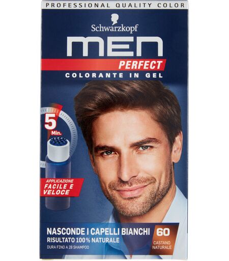 Risultato colore 100 % naturale - Specificamente per l'uomoMen Perfect è un colorante in gel delicato e facile da usare che nasconde i capelli bianchi in un modo naturale e discreto. Applicato con l'applicatore veloce brevettato da Testanera, la formula rinfresca il tuo colore dei capelli e li rinforza.Dura fino a 28 shampoo.Risultato veloce ed efficace - In soli 5 minutiIl tempo di posa e il risultato colore dipende dalla quantità di capelli bianchi.Per i primi capelli bianchi 5 min. (fino al 10%)Per molti capelli bianchi 10 min. (fino al 50%)Formula energizzante con mineral complexLa formula di Men Perfect contiene sali minerali che aiutano a rinforzare e migliorare la struttura del capello.Elimina i capelli bianchi - rinfresca il tuo colore di capelli in un modo incredibilmente rapido e facile con Men Perfect.Applicazione in 5 minutiRisultato naturale raggiunto velocemente grazie all'applicatore facile da usarePreparazione e usoMiscela il gel colorante con l'emulsione rivelatrice e agita beneUsa il veloce applicatore per distribuire il gel colorante sui tuoi capelli e risciacqua dopo 5-10 minuti ...