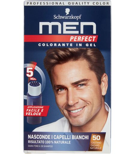 Risultato colore 100 % naturale - Specificamente per l'uomoMen Perfect è un colorante in gel delicato e facile da usare che nasconde i capelli bianchi in un modo naturale e discreto. Applicato con l'applicatore veloce brevettato da Testanera, la formula rinfresca il tuo colore dei capelli e li rinforza.Dura fino a 28 shampoo.Risultato veloce ed efficace - In soli 5 minutiIl tempo di posa e il risultato colore dipende dalla quantità di capelli bianchi.Per i primi capelli bianchi 5 min. (fino al 10%)Per molti capelli bianchi 10 min. (fino al 50%)Formula energizzante con mineral complexLa formula di Men Perfect contiene sali minerali che aiutano a rinforzare e migliorare la struttura del capello.Elimina i capelli bianchi - rinfresca il tuo colore di capelli in un modo incredibilmente rapido e facile con Men Perfect.Applicazione in 5 minutiRisultato naturale raggiunto velocemente grazie all'applicatore facile da usarePreparazione e usoMiscela il gel colorante con l'emulsione rivelatrice e agita beneUsa il veloce applicatore per distribuire il gel colorante sui tuoi capelli e risciacqua dopo 5-10 minuti ...