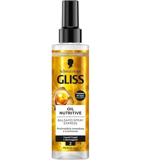Schwarzkopf - gliss oil nutritive balsamo spray 200 ml con omega 9 e olio di marula senza risciacquo e termoprotettore