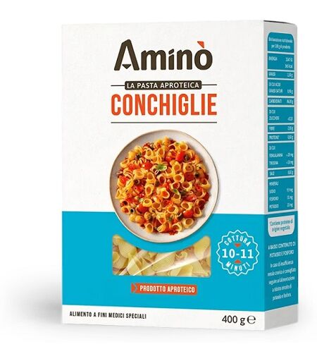 Aminò - CONCHIGLIE - Descrizione Alimento a fini medici speciali. Alimento con ridotto valore proteico, residuo proteico inferiore all' 1%. Indicato per la gestione dietetica di persone affette dalle seguenti patologie insufficienze renali croniche (nefropatie) o altre malattie che richiedono un re… ...