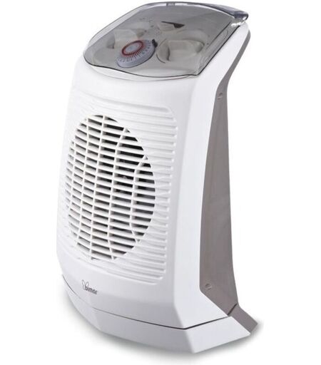 Codice: HF201 Marca: BIMAR. Il calore è diretto nella zona interessata, si diffonde velocemente con la ventilazione forzata, e in modo ampio con l'oscillazione dx.sin. - Grado di protezione IP21 per l'uso anche in stanza da bagno - Programmatore giornaliero per l'uso periodico - 2000W 230V ~ 50Hz - Resistenza a filo non incandescente - Selettore 0/ventilazione/aria calda1000W/aria molto calda 2000W - Programmatore 24h e tasto per esclusione - Oscillazione automatica dx-sin - Termostato regolabile - Segnalatore luminoso - Corpo in plastica con maniglia integrata e protezione dei comandi - Idoneo per ambienti di 60m³ circa - Bimar Design patent ...