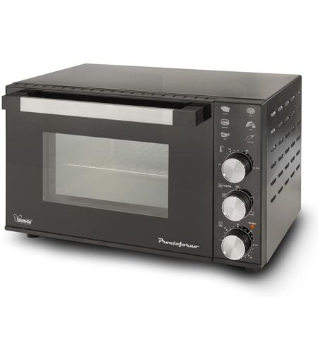 BIMAR FORNO ELETTRICO 30 LITRI B300 4 resistenze inox Selettore: 6 modalità di cottura Termostato regolabile: 80° - 230°C Timer 60' con avviso acustico e funzione "timer escluso" Ventilatore per la convezione interna Luce interna Segnalatore luminoso Capacità interna 30 litri Pareti autopulenti Teglia rettangolare alluminata Griglia inox, regolabile a 3 altezze. Vassoio raccogli-briciole. Impugnatura per teglia e griglia. Sportello con doppio vetro in cristallo 220-240V~ 50Hz 1800W BIMAR è un'azienda italiana con sede a Sirmione (BS) specializzata nella produzione e nella commercializzazione di piccoli elettrodomestici e apparecchi elettronici per il riscaldamento e la ventilazione, con uno sguardo rivolto al futuro verso la easy domotica e il mondo dei prodotti smart. ...