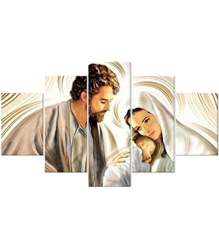 LGVSHOPPING Lupia - Quadro moderno Sacra Famiglia 5 pezzi in legno VOGUE 66X115 cm NATIVITY Brown, per soggiorno, camera da letto