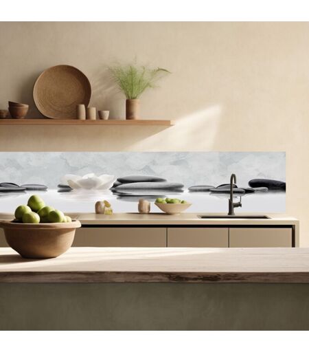 LUPIA Pannello Paraschizzi Schienale Cucina con decorazione stampata, LOTUS AND STONES, in Alluminio composito, Facile da applicare, Lavabile