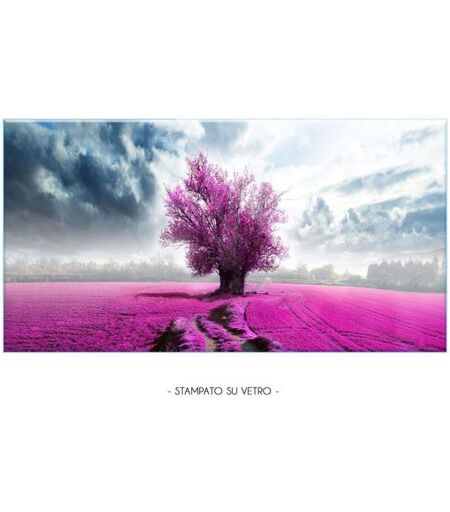 LUPIA - Quadro Moderno Stampa su Vetro Temperato GLASS ALBERO SOLITARIO VIOLET Alta Definizione e Lucentezza di Colori Design Elegante per Soggiorno,