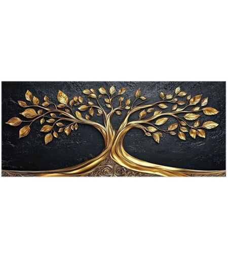 LUPIA - Quadro moderno Canvas World TREE GOLD BLACK 52x122 cm, Stampa su Tela effetto Pennellate tridimensionale, Albero della Vita, Telaio in Legno,