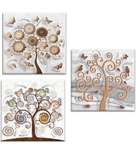 LUPIA - Set 3 pezzi Quadri su tela albero della vita Canvas Day Brillant con glitter 38x38 cm TREE WHITE