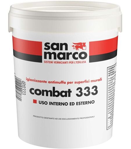 Igienizzante antimuffa Combat 333 igienizzante antimuffa lt 5 Combat 333 è un prodotto di preparazione specifico perl'igiene delle pareti, agisce contro muffe ed algheimpedendone la proliferazione nel tempo. preserval'aspetto estetico originale delle pitture applicate su supportiall'esterno ed all'interno. ...