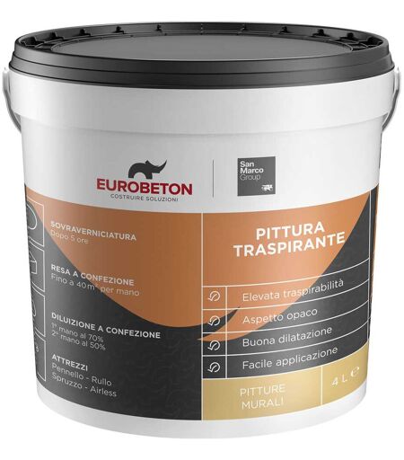 Pittura Traspirante Eurobeton Smarco 4 L Bianco 4-5 M² Con 1 L A 2 Mani ...
