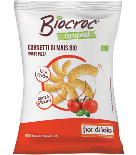 Fior Di Loto Biocroc - Cornetti Di Mais Bio Gusto Pizza 50g. Snack A Base Di Farina Di Mais Bio Con Miscele Aromatiche A Base Di Spezie E Aromi Bio. Non Fritto. Senza Glutine. ...