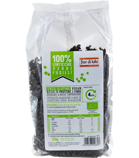 FIOR DI LOTO 100% Lenticchie Verdi Fusilli 250 Grammi