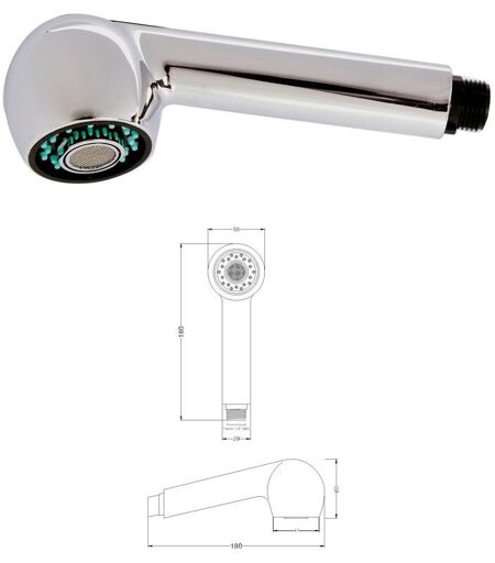ISTRUZIONI DI UTILIZZO: Portata 15,3 litri/minuto a 3 bar Pressione minima 0,10-0,20 bar L'inserto interno, termoresistente ed antiurto, permette al manico di sopportare temperature elevate senza causare problemi nell'utilizzo. MATERIALI E FINITURA: ABS cromata atossico e conforme alle normative di sicurezza MISURE: Filetto 1/2" gas all'ingresso ...