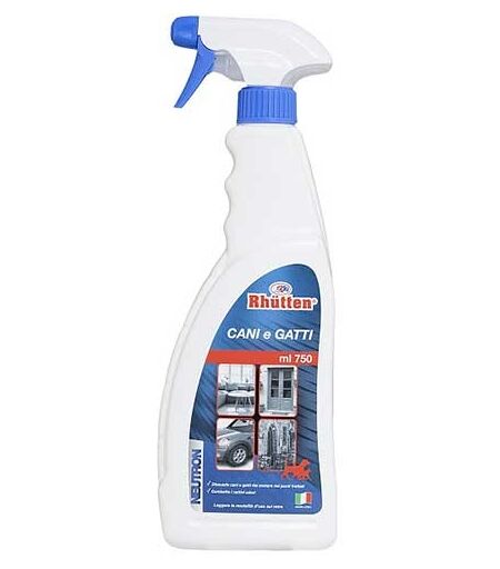 Ferraboli Rhutten Disabituante cani e gatti 750ml ideale per la casa, davanzali, giardino e terrazze. Prodotto che aiuta a prevenire determinati comportamenti di cani e gatti quali la marcatura di urina, le graffiature. Combatte i cattivi odori. Dotato di tappo salva-bimbo. ...