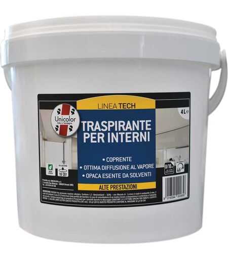 Unicolor PITTURA TRASPIRANTE BIANCA 4 l IDEALE BAGNI CUCINE 4-5 m² CON 1 l A 2 MANI