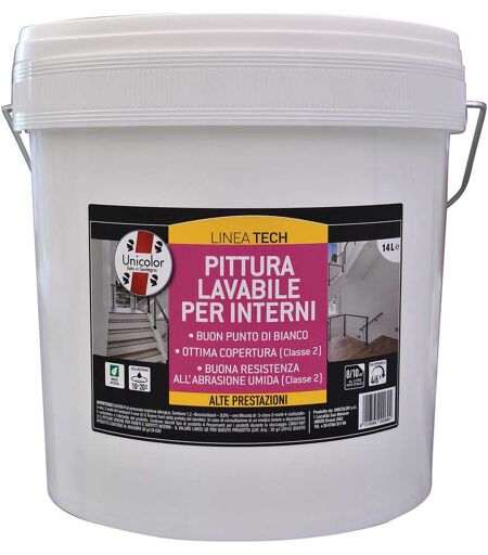 Pittura Lavabile Unicolor Bianca 14 L Ideale Per Soggiorni Camere 5-6 M² Con 1 L A 2 Mani ...