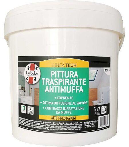 Unicolor PITTURA TRASPIRANTE ANTIMUFFA 10 l BIANCA PROFESSIONALE 5-6 m² CON 1 l A 2 MANI