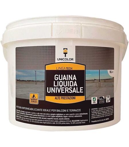 Unicolor GUAINA LIQUIDA BIANCA 5 l PER CEMENTO E FIBROCEMENTO 4/5 m²/l SPESSORE 0,3mm