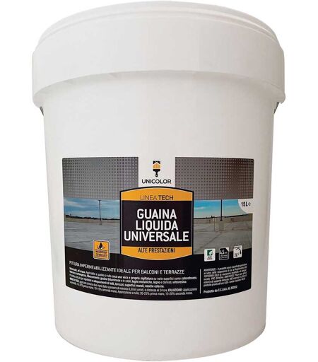 Unicolor GUAINA LIQUIDA BIANCA 15 l PER CEMENTO E FIBROCEMENTO 4/5 m²/l SPESSORE 0,3mm
