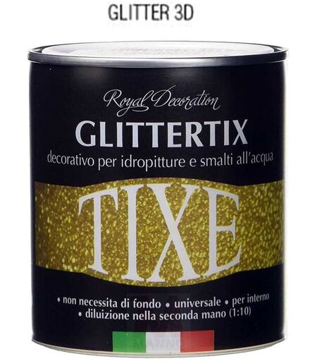 Additivo glitter in diverse tonalità e in speciale emulsione neutra che può essere usato come additivo nelle comuni idropitture neutre o colorate, flatting ad acqua e negli smalti ad acqua di tutte le tonalità. Grazie alla sua formula in gel porta ottima miscelazione senza formazione di grumi, senza residui volatili, e con ottima omogeneità. DESCRIZIONE Glitter in diverse tonalità in speciale emulsione neutra. Deve essere usato come additivo sia alle comuni idropitture neutre o colorate che agli smalti all’acqua di tutte le tonalità. Semplici da usare, si possono applicare su pareti già verniciate impreziosendone l’aspetto finale. Si possono inoltre aggiungere negli smalti acrilici all’acqua o nelle flatting trasparenti all’acqua per poter essere applicate direttamente su svariati supporti (mobili e oggetti in legno e metallo). Non va utilizzato direttamente. Se scegli - > GLITTER 3D La speciale formulazione del glitter 3D crea giochi di riflessi e luminosità differenti conferendo ...