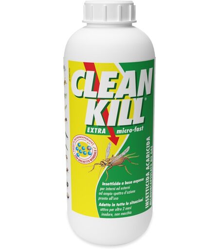 CLEAN KILL - EXTRA micro - fast - Descrizione Insetticida - acaricida liquido micro incapsulato in sospensione acquosa pronto all'uso dotato di un ampio spettro d'azione. È particolarmente adatto sia agli usi interni che in ambiente esterno. È un insetticida - acaricida che agisce principalmente pe… ...