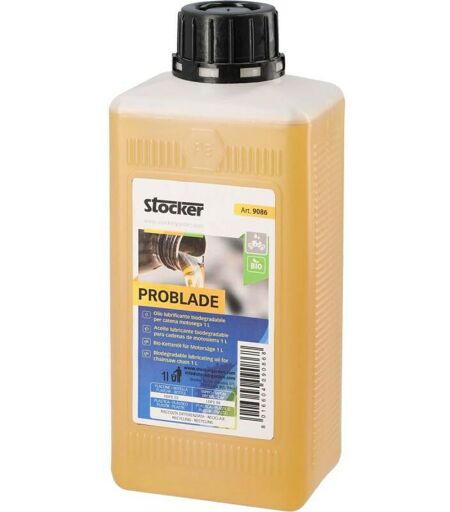 STOCKER - 9086 - PROBLADE 1 lt Olio lubrificante Biodegradabile per motosega Problade 1 litro, olio lubrificante biodegradabile per la catena della motosega. Ti aiuterà a rendere fluido il movimento della catena della tua motosega. L'olio è totalmente biodegradabile e sicuro, ideato per il rispetto dell'ambiente. ...
