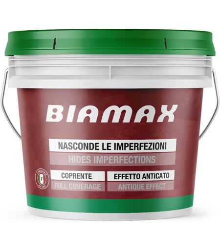 Biamax è una pittura ecologica ad effetto anticato, riempitiva, coprente e mascherante, traspirante ad altissima resistenza all'abrasione. Disponibile nelle versioni "03" (granulometria massima 0,3 mm) e "07" (granulometria massima 0,7 mm). Per avere informazioni piu' dettagliate contattare il nostro Servizio Clienti. ATTENZIONE, TINTE PURAMENTE INDICATIVE RICAVATE DA MAZZETTA OIKOS ...