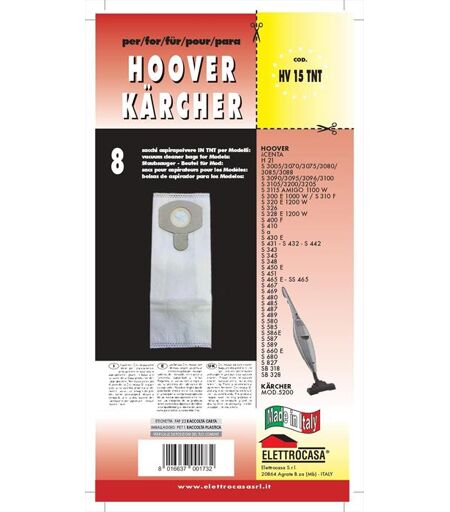 ELETTROCASA Sacchetti Per Hoover/karcher Hv15tnt 8pz-multicolore