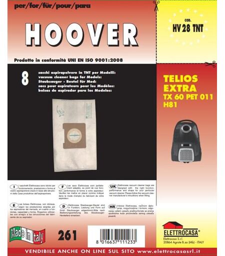 Sacchetti per Aspirapolvere in TNT - Compatibili con TELIOS EXTRA TX60 PET011 H81 ...