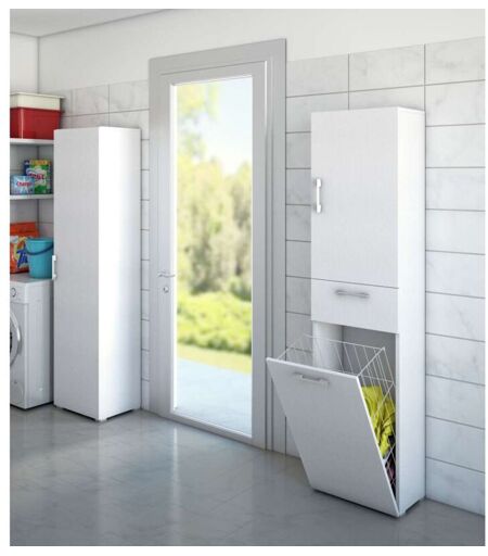 Terraneo Mobile Multiuso Bianco con Cestello Porta Biancheria 45x32x195